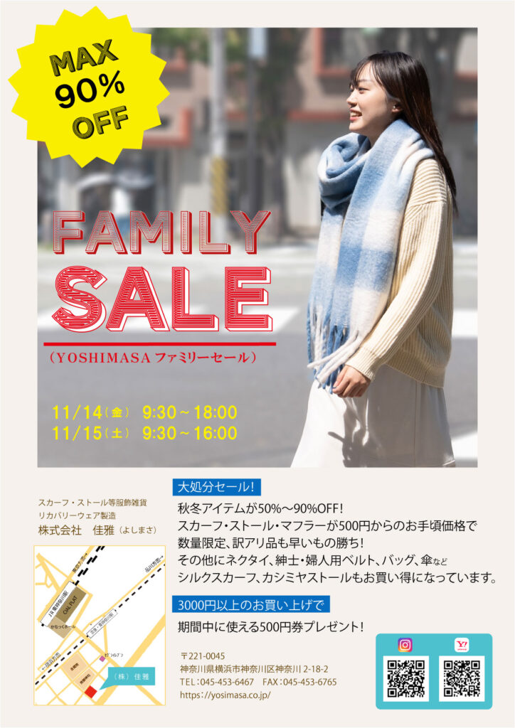 来る11月14日(金)・11月15日(土)の両日、弊社内会場にてファミリーセールを開催いたします!